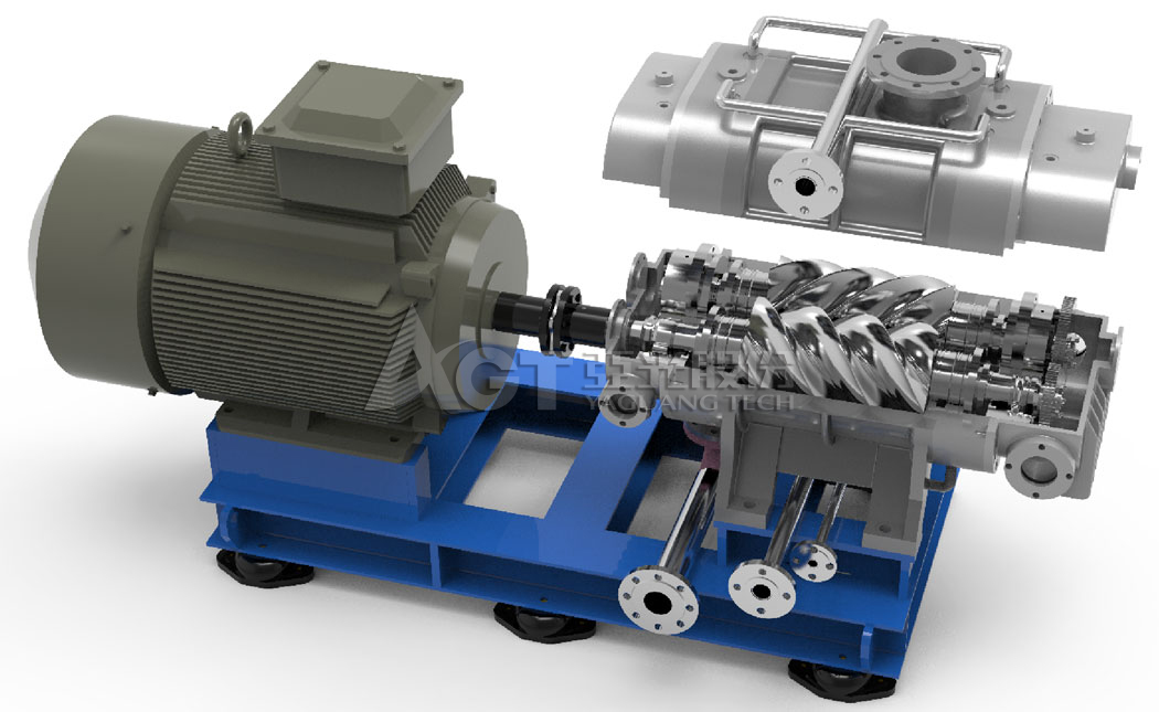 體積小 | 占地小 | 易安裝 | 易維護 該系統以高效旋轉精餾床為基礎,利用離心力場代替重力場,強化相與相之間的相對速度和相互接觸,通過強化傳質傳熱來提高分離效率縮小設備體積。 通過在系統中引入適用于小流量、大壓比的螺桿式蒸汽壓縮機,即可實現MVR循環熱泵精餾。