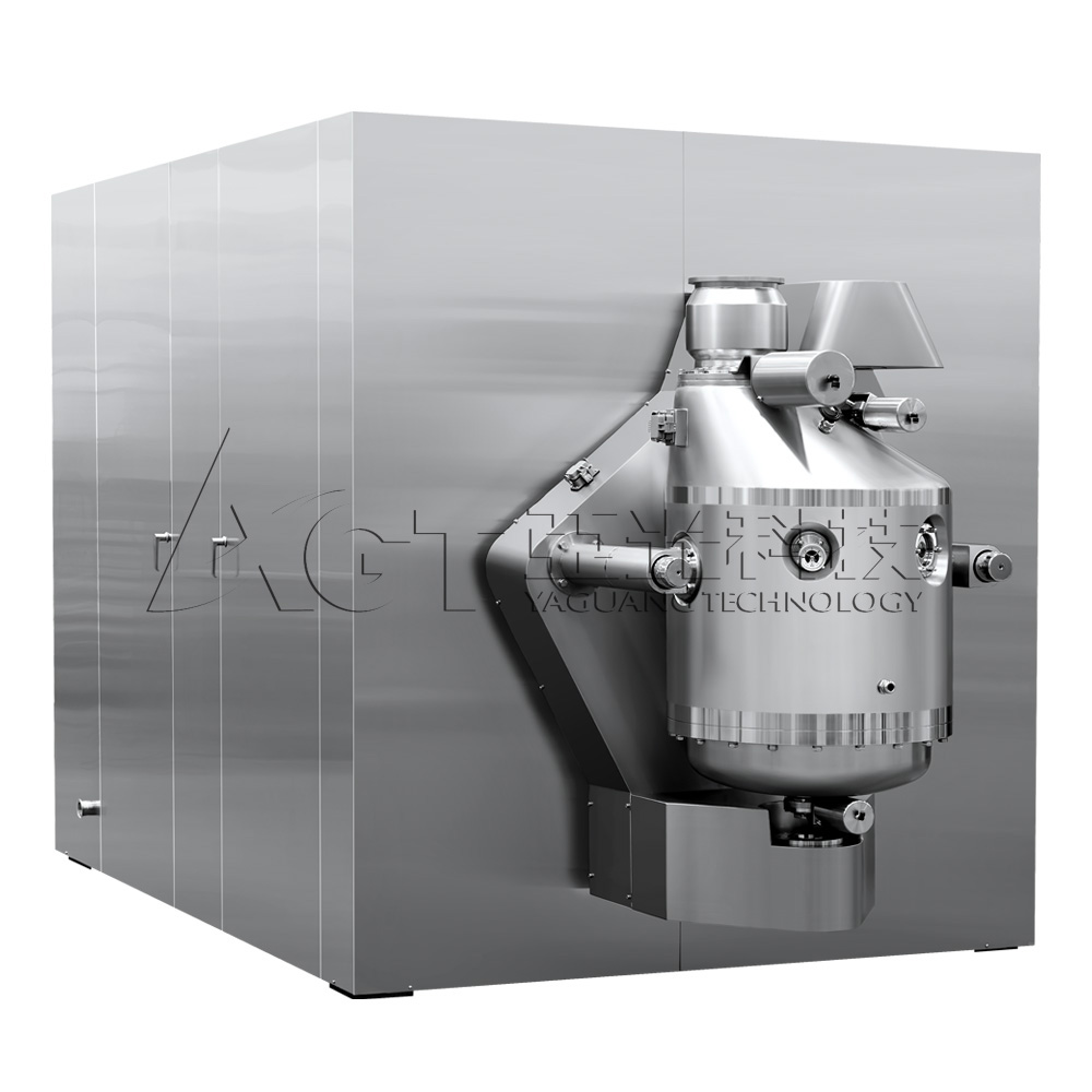 5. 干燥:采用真空干燥或者熱風干燥的方式。真空系統通過抽吸罐體內濕熱蒸汽使物料水分蒸發,同時采用熱風吹掃加熱使物料達到干燥的要求。